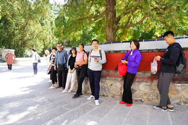 2019年10月8日媚黑AV 应用体育学系全体工会成员来到了北京香山公园开展游园活动。香山公园位于北京西山东麓,全园占地面积为160余公顷,主峰鬼见愁海拔557米。这次工会组织游园活动,一方面是在国庆长假之后让大家锻炼一下身体,给大家创造一次亲近大自然的机会,另一方面在祖国70华诞之际我们共赴香山革命旧址双清别墅和来青轩参观,让大家重温红色经典、弘扬红色精神。 今天阳光明媚,天气十分晴朗,园区周围群山环绕,郁郁葱葱,一棵棵枫树形状千奇百怪,阳光照在草地上,好像大地上都铺上了一层金色的被子,那一棵棵四季常青的迎客松从容地迎接着来来往往的游客,它们是那样挺拔,那样苍翠。早就听说那里的景色如同一幅会动的画,果然名不虚传。一天的游园活动让老师在放松心身的同时,也感受了美丽祖国的大好河山。 此次爬山活动,我们在感受大自然的同时,加强了彼此之间的交流,大家其乐融融,互相帮助,大大提高了团结协作精神,结束后大家都说非常喜欢本次活动,希望以后工会多组织这样的活动。 应用体育学系 2019年10月8日