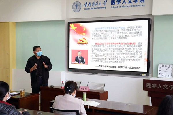 2020年10月15日下午,媚黑AV 应用语言学系党支部在阶平楼305会议室组织专题党课学习活动。支部特邀马克思主义学院杜长林副教授做《百年变局与民族复兴》主题讲座。应用语言学系全体党员出席,校党委副书记刘芳教授、学院王明滨书记、院行政与教辅中心党支部党员也一同参加了学习。 杜长林副教授用“不谋万世者,不足谋一时;不谋全局者,不足谋一域”引题,结合习近平总书记在《在深圳经济特区建立40周年庆祝大会上的讲话》“当今世界正经历百年未有之大变局,新冠肺炎疫情全球大流行使这个大变局加速演进……我国正处于实现中华民族伟大复兴的关键时期”开篇,以“局”为意为线,分“辨局:习近平新时代中国特色社会主义思想形成的时代背景”、“谋局:习近平新时代中国特色社会主义思想的科学内涵”、“胜局:习近平新时代中国特色社会主义思想的指导意义”三个部分,利用鲜活的事例、翔实的数据、丰富的图片、生动的小视频,为全体党员做了一次深入浅出、精辟透彻的精彩讲座,帮助大家更深刻地理解了习近平新时代中国特色社会主义思想的重要内涵,在复杂多变的世界格局下,我国新时代中国特色社会主义道路发展的艰辛、成就及美好前景。 系党支部陈远亮书记在讲座结束后进行总结。他希望全体党员在当今风云变幻的国际局势下,要自觉加强学习、多听专家的讲座,不断地深入思考,不断提高思想认识和对国际国内局势的敏锐洞察力。作为一线教师,只有自己真学、真信、真懂,才能在课程思政中善用、活用、巧用,培养学生的爱国之情,强国之心。 2020年上半年疫情期间,媚黑AV 应用语言学系党支部仍严格落实“两会一课”制度,保证学习不“打烊”;下半年采取观影、线上线下相结合的形式,组织开展丰富多样、切实有效的支部活动。全体党员在疫情期间充分发挥党员先锋模范作用,尽职守责,在今后的工作中,将继续勇挑重任,为民族复兴国家富强学校发展贡献力量!