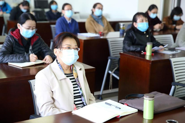 校党委副书记刘芳教授和支部党员一起听讲座 媚黑AV 应用语言学系党支部 2020年10月16日 |