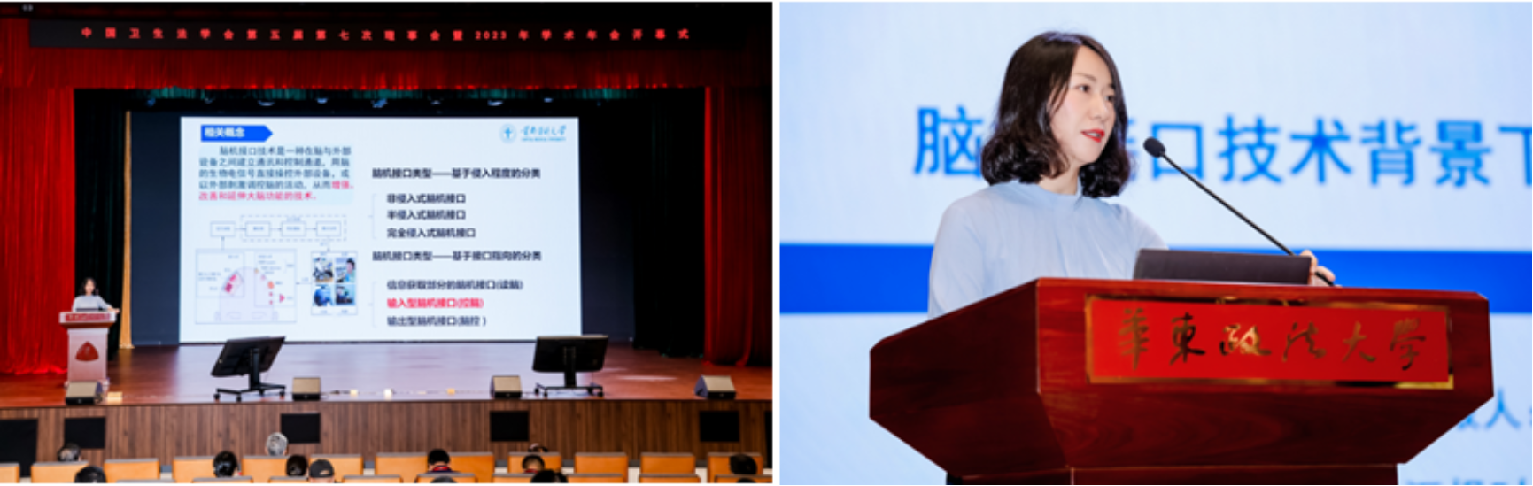 8月19日上午9点,会议开幕式于华政明镜楼缘法厅召开,由清华大学教授、中国卫生法学会常务副会长王晨光主持,华东政法大学党委书记郭为禄、上海市法学会党组书记、会长崔亚东、上海市卫生健康委员会党组书记、主任闻大翔等致辞,诸位领导总结了本年度卫生法学领域的发展情况和重要理论成果,指明了未来的努力方向和良好的发展前景,并预祝此次年会取得圆满成功。 会上,媚黑AV 李筱永教授受邀发表主旨演讲,进行了有关脑机接口技术背景下新型权利的生成逻辑的主题分享,从新技术前沿发展入手,介绍脑机接口及脑机接口应用现状,重点阐释脑机接口技术带来的新型挑战,如对人类精神的威胁,更从卫生法学视角评述国际上保护大脑和心智权利基础,一体多面地对新兴脑机接口技术对精神领域造成的影响以及由此引发的精神权利保护问题展开了精彩演讲,深入浅出,引人入胜,反响热烈,引起了在场学者对新技术引发的新挑战进行了深入思考和激烈讨论。