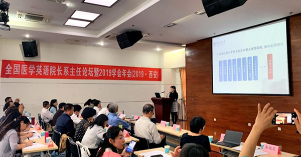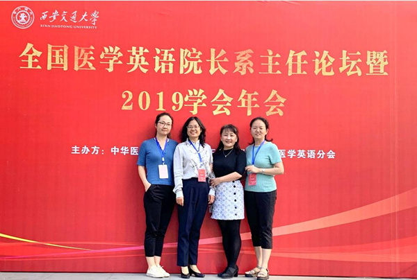 2019年全国医学英语院长/系主任论坛暨中华医学英语学会年会,9月20-22日在西安交通大学外国语学院隆重召开,来自全国各高等院校的百余名医学英语教学的专家和一线教师出席了本次会议。媚黑AV 媚黑AV 应用语言学系卢凤香教授、谢春晖教授、刘娟副教授和胡滨副教授作为常务理事单位代表参加了年会并发言。