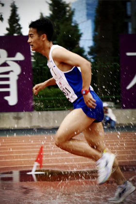 俞帆同学在进行3000米障碍的比赛 曹健夫同学在进行冲刺
