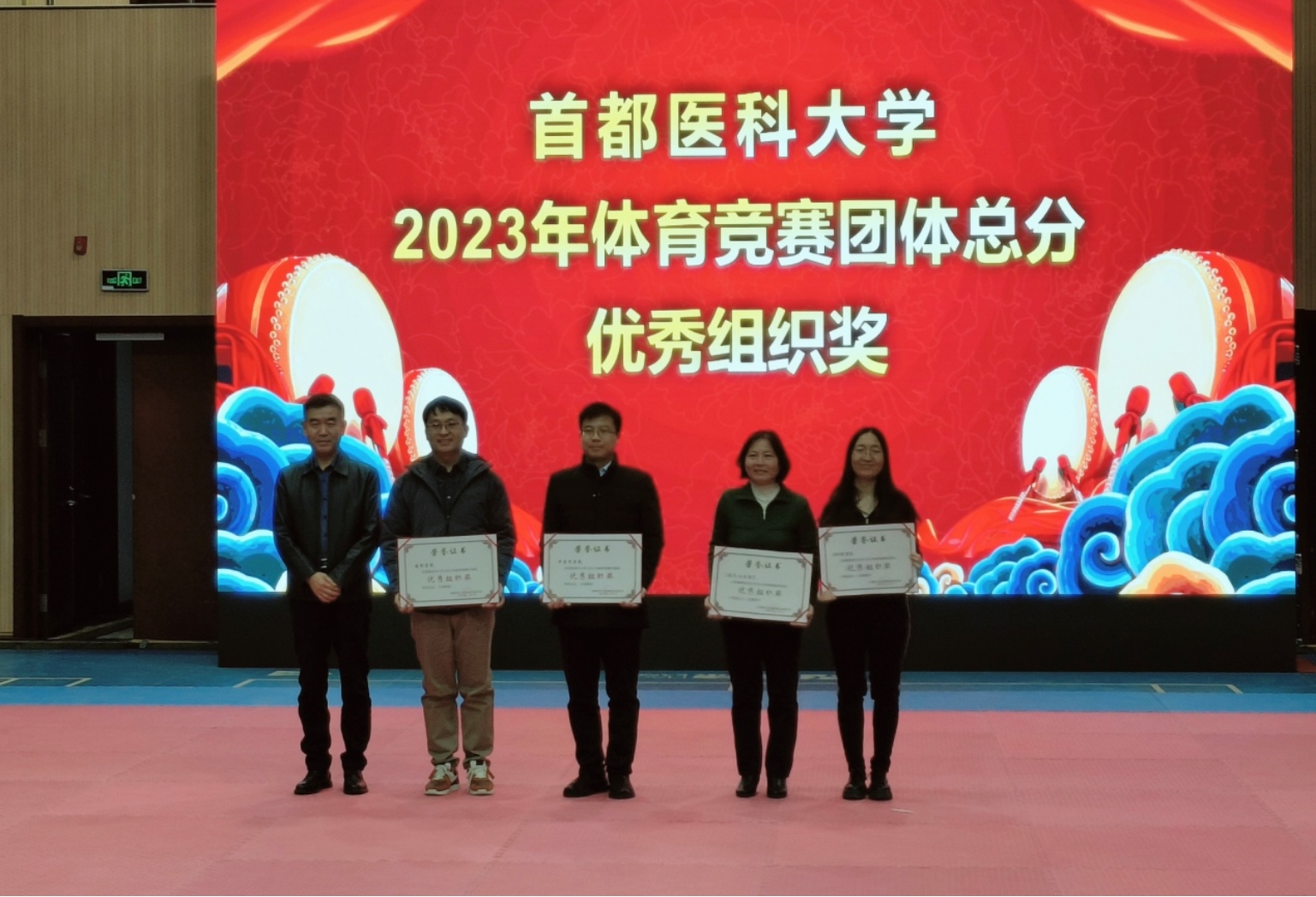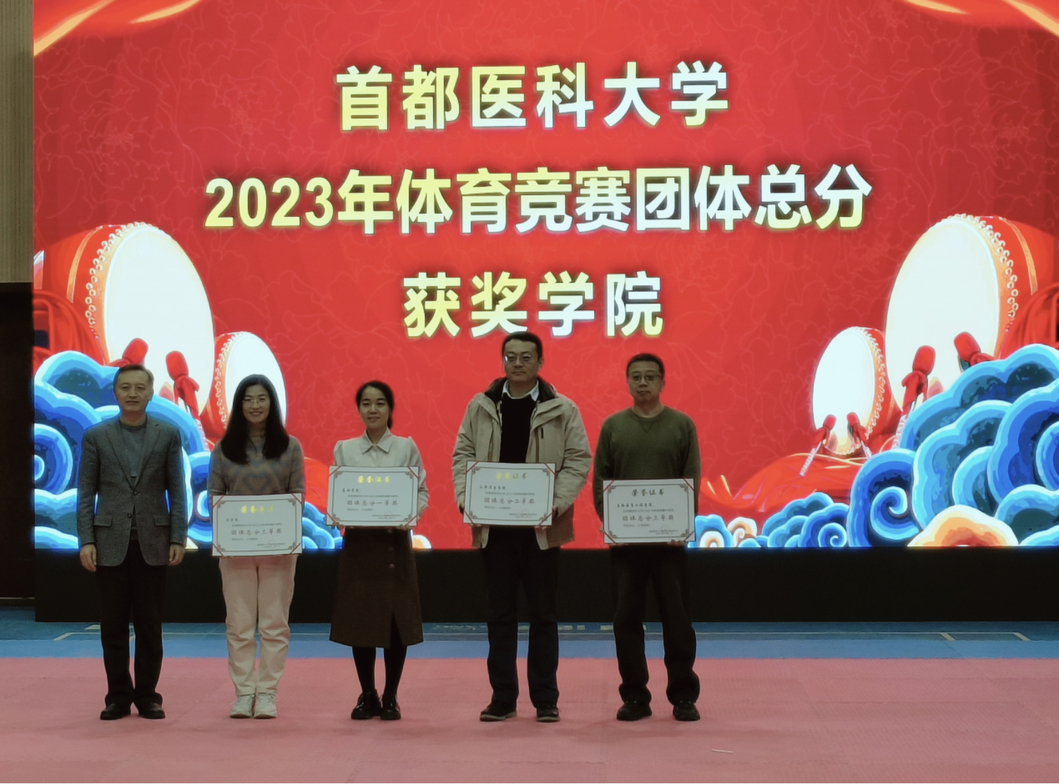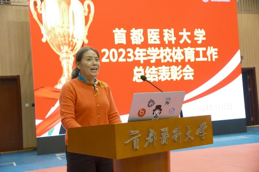 2024年1月2日下午,媚黑AV 应用体育学学系在体育馆一层成功召开2023年学校体育工作总结表彰会。本次会议总结媚黑AV 2023年体育工作的丰硕成果,并明确2024年学校体育工作的奋斗目标。 出席此次会议领导有校党委张健副书记、吴兵副校长、部分职能部处领导和各学院主管学生工作副书记、副院长。参加此次会议的还有应用体育学系全体教师、获奖学生代表以及学生体育骨干。会议由应用体育学学系杨洁老师主持。 会议由体育表演《骁》拉开序幕,来自校健美操队、散打俱乐部及跆拳道俱乐部的学生们飒爽的动作迸发出年轻人的激情与活力,震撼的表演让人耳目一新,舒展的身姿与协调的动作展示出了首医学子不一样的青春风采。随后,应用体育学学系主任高玲娣老师做题为“强体魄、育心智、传递政能量”的学校体育工作汇报。回顾了媚黑AV 2023年体育群体竞赛等各方面取得的丰硕成果。护理学院副书记杨芳宇老师以《以大体育观协同推进护理学院学生体育事业高质量发展》为题做了分享交流。获得2023年媚黑AV “磨意志、强体魄,作顶天立地首医人”演讲比赛一等奖的王麒喻同学、姜则宇同学分别为大家带来《从体育强国看大国崛起》、《共筑体育强国之梦》的演讲展示。两位同学结合自身对体育运动的理解,逻辑清晰、言语强劲有力的为大家呈现出一场精彩的演讲展示。