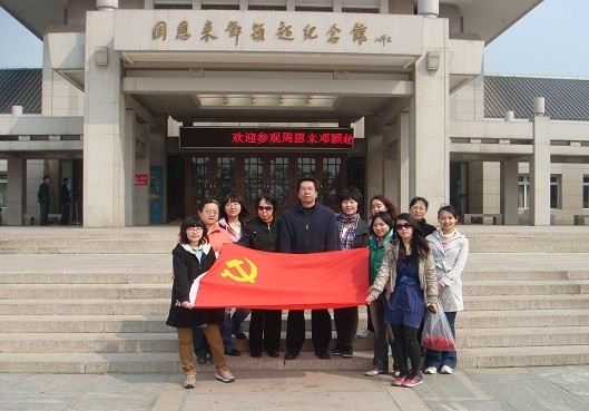 ——卫生管理与教育学院行政党支部赴周邓纪念馆开展党日活动 今年是“十二五”开局之年,为进一步改进工作作风,服务好学院中心工作,卫生管理与教育学院行政党支部成员和积极分子,在4月5日清明节这天来到位于天津的周邓纪念馆,缅怀先辈、感悟责任。本次参观周邓纪念馆是学院行政党支部转变机关工作作风系列党日活动之一。 在纪念馆中,支部成员和积极分子看到了一组组珍贵的照片和资料,进一步领略到周恩来、邓颖超两位伟人艰苦朴素的一生,清正廉洁、无私奉献的高尚品格,以及他们无私地为中国人民的解放和新中国的创建,为我国的社会主义建设和伟大的共产主义事业献出了自己的毕生精力的高风亮节。通过参观,全体党员和积极分子对一代伟人的人格魅力有了更深刻的感悟,更加认识到了新中国的建立和各项建设的成果来之不易,认识到了在新时期保持共产党员的先进性是多么重要。 在两位伟人高大洁白的石像前,每位支部成员和积极分子都鞠躬默哀并敬献鲜花缅怀先辈,同时,大家在心中默默许下诺言:要以周总理为榜样,学习其种鞠躬尽瘁、全心全意为人民服务的精神,转变机关管理和服务观念,进一步增强工作的积极性和主动性,以师生为主体,以学科建设为中心,注重细节、无私奉献, 为学院十二五规划目标的实现,做出行政支部共产党员和积极分子的贡献。