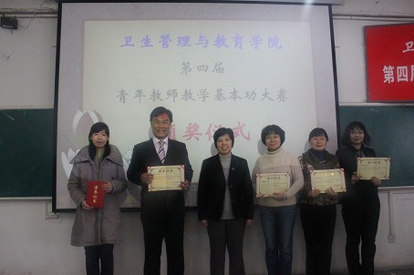 为了给广大青年教师提供一个展示和提高自身教学能力的平台,锻炼青年教师的基本教学能力,卫生管理与教育学院于2011年12月3日在二教楼第八阶梯教室举办了第四届青年教师教学基本功大赛。出席大赛的校院领导有:副校长线福华教授、学院院长王晓燕教授、王泽生书记、张艳清教授,大赛邀请了学院督导组的邱陶生教授、崔锡章教授以及学院部分资深老教授和2名七年制学生共同组成评委会。共有11名由各学系推荐的优秀青年教师参加了本次比赛。经过历时近四个小时的教学比赛,最终郭晶、李颖获一等奖,杨波、李筱永、许琛、方海涛获二等奖,杜姗姗、李琪、刘亮、李亚明、孟倩获三等奖,应用体育学系被评为最佳组织奖。 崔锡章教授对青年教师的教学演示做了精彩点评,她充分肯定了选手们的精彩表现,并对教师在授课中的时间掌控、案例选择等问题提出进一步改进的建议。线福华副校长对大赛做了全面总结,她认为本次比赛组织完善、内容丰富,青年教师的讲授生动精彩,体现了较高的教学水平。线福华副校长强调,本届比赛是卫管学院自04年建院以来举办的第四次青年教师教学基本功大赛,不仅体现了卫管学院成长的历史足迹,同时也体现了卫管学院各个新的学系以及青年教师的成长,大赛不仅帮助了青年教师教学水平的提升,也为青年教师提供了一个交流的平台,因此这一比赛要作为教师队伍建设的重要措施不断持续下去。线福华副校长还对青年教师授课提出几点希望:第一,要遵循教学大纲;第二,要精心安排教学内容并撰写教案;第三,要不断提高教学效果;第四,要体现教书育人。 比赛最后,卫管学院王晓燕院长表达了对学校领导支持的深切感谢并且指出卫管学院全体老师一定在学校的领导下,秉持着教书比天大的根本理念,为培养合格的人才更加努力!
