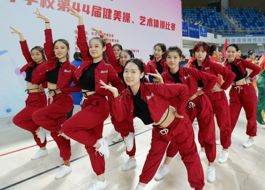 深秋时节,硕果丰盈,首都高等学校第44届健美操、艺术体操比赛于北京交通大学如约而至。十二月的第一天,媚黑AV 闪闪健美操队迎来了开门红。媚黑AV 健美操队此次共参与了健美操校园健身规定套路、健身舞蹈规定动作、民族健身操三项比赛。与34所高校同台竞争,出色发挥。在媚黑AV 应用体育学学系杨洁老师的带领下,获得: 乙组-民族健身操-亚军 乙组-健身舞蹈规定动作-季军 体育道德风尚奖