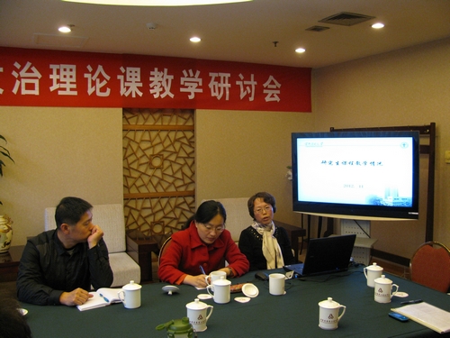 ![]() ![]() 张旭平老师首先向学系教师介绍了研究生思政课教学改革的背景、必要性及思政课改革后的课程设置与教学要求。接着四位参与研究生思政课教学的教师围绕研究生思政课中的两门必修课:“中国特色社会主义理论与实践”、“中国马克思主义与当代”进行了课程设计与实施的主题交流与讨论。张艳清老师首先就围绕专题组织一堂精彩的授课给大家做了教学演示,并详细讲述了自己备课时的心得体会;杜长林老师就博士生的政治理论课与各位老师分享了如何在理论问题讲授中寻找合适的点来吸引学生兴趣的教学经验;张晓荣老师就教学改革实践环节的感想与大家进行探讨;张旭平老师以“中国特色社会主义社会建设”章节为例谈了自己对课程设计的整体设想及如何体现专题性授课特点的思考。各位老师还围绕本科生思政课如何与研究生思政课相对接,体现理论的逐步深入、步步高进行了相关的内容与方法的教学交流。大家认为随着研究生思政课的改革,本科生与研究生思政课在内容上趋同,但又要在实际授课中体现出差异,需要学系教师通过加强集体备课,教学研讨交流,在相关联的课程上寻找各自的课程定位,既要做到相互衔接,又能让学生感受到本、硕、博不同学习阶段思政课的学习对其理论素养、知识层次、学习视野的逐步提升。 会议最后,张艳清副院长对研究生教学改革的进一步落实做了总结性发言,肯定了研究生思想政治理论课改革的意义,勉励老师们在今后的教学中认真学习、不断开拓,努力在教学环节、教学效果上实现李长春同志对研究生思想政治教育提出的“步步高”和“步步深”。 |