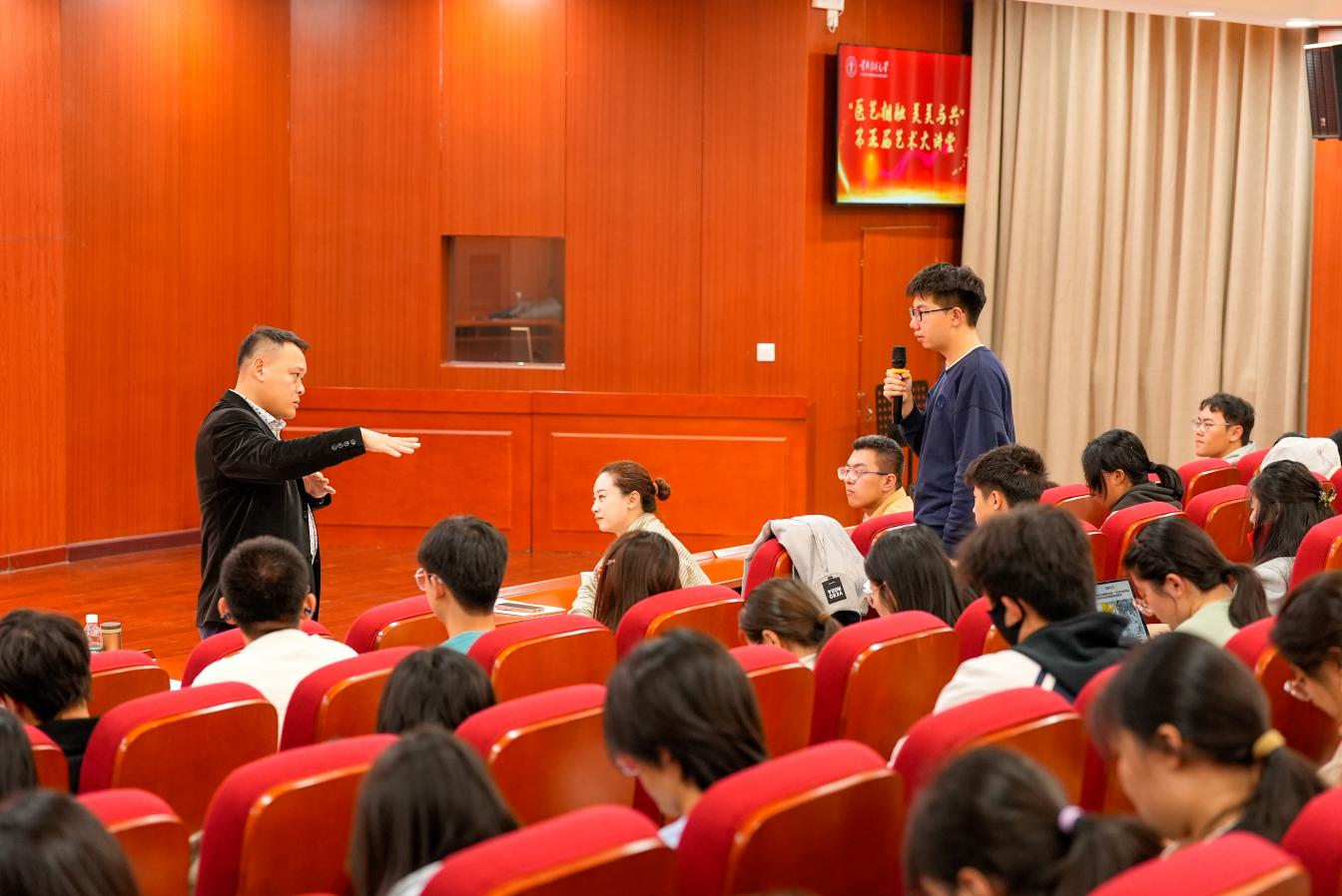 张清华主持讲座 “医学守护生命健康,艺术温润心灵,二者共同以‘关怀人、滋养人’为本质”,张清华在致辞中深刻点明医艺融合的育人理念。