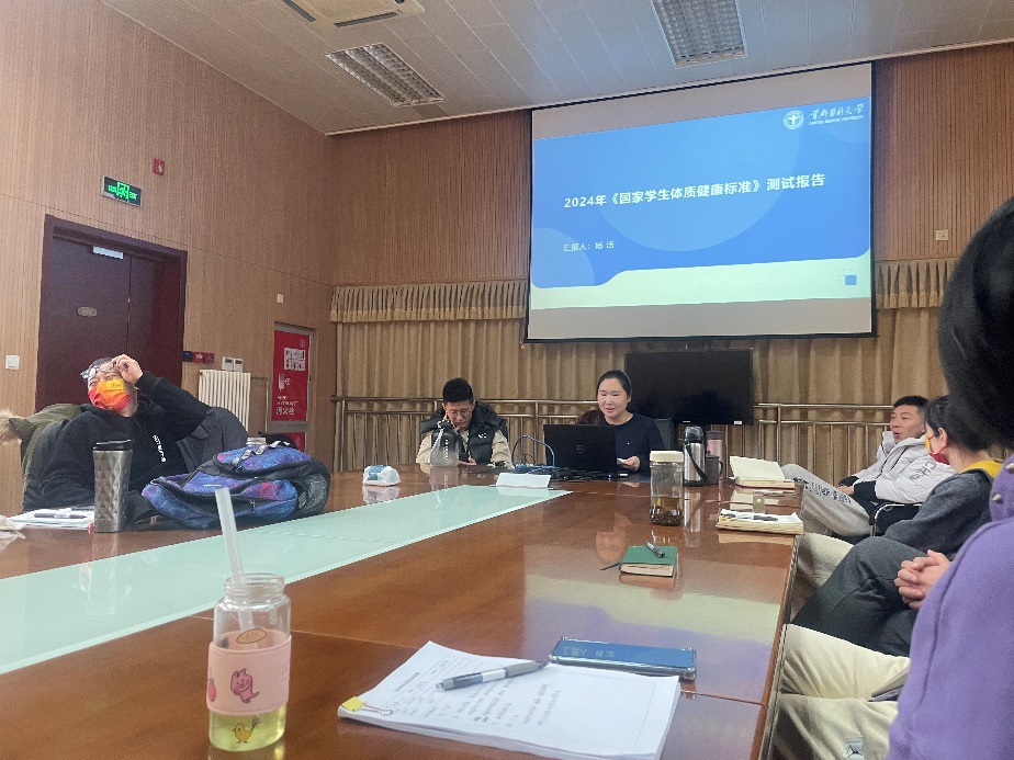 2025年1月13日,应用体育学学系秘书述职在体育馆会议室进行。学系的全体教职员工参加了会议。学系主任高玲娣老师主持会议。学系针对教学、科研、群体、行政、工会、体质测试等工作进行了认真的梳理总结。首先,由各位秘书根据工作职责、工作内容、完成情况及接下来的工作设想进行工作汇报。各位秘书针对自己的工作情况提出问题、总结不足。随后学系主任高玲娣老师对各位秘书提出工作建议,并对各秘书的述职汇报进行了点评。她提出,学系教学及群体工作量大且内容繁杂,为他们的辛勤付出表示肯定。在新的一年里,继续发挥首医体育人的优势,按照学校要求,高质量的完成教学工作、校内外比赛报名、工作宣传、及各种群体竞赛活动。利用好各种数字化新媒体的宣传途径,让学生了解学校的各项体育竞赛活动,真正将体育精神融入学生的生活与学习之中。