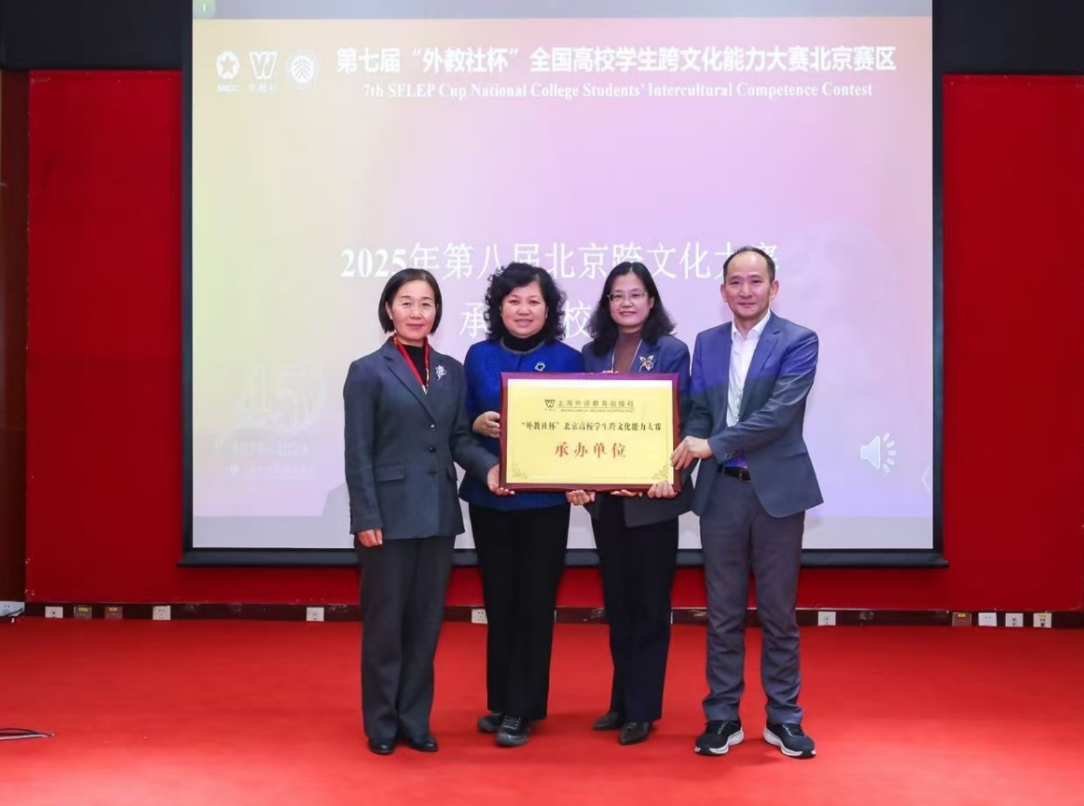 “外教社杯”北京高校学生跨文化能力大赛承办单位牌匾交接仪式 |