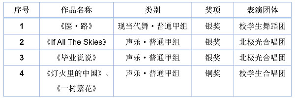 共揽获3银1铜 据悉,2021年北京市大学生艺术系列活动自2021年9月启动以来,共收到来自55所高校报送的369件作品。活动旨在全面贯彻党的教育方针,充分展示北京高校美育成果,丰富高校学生的校园生活。