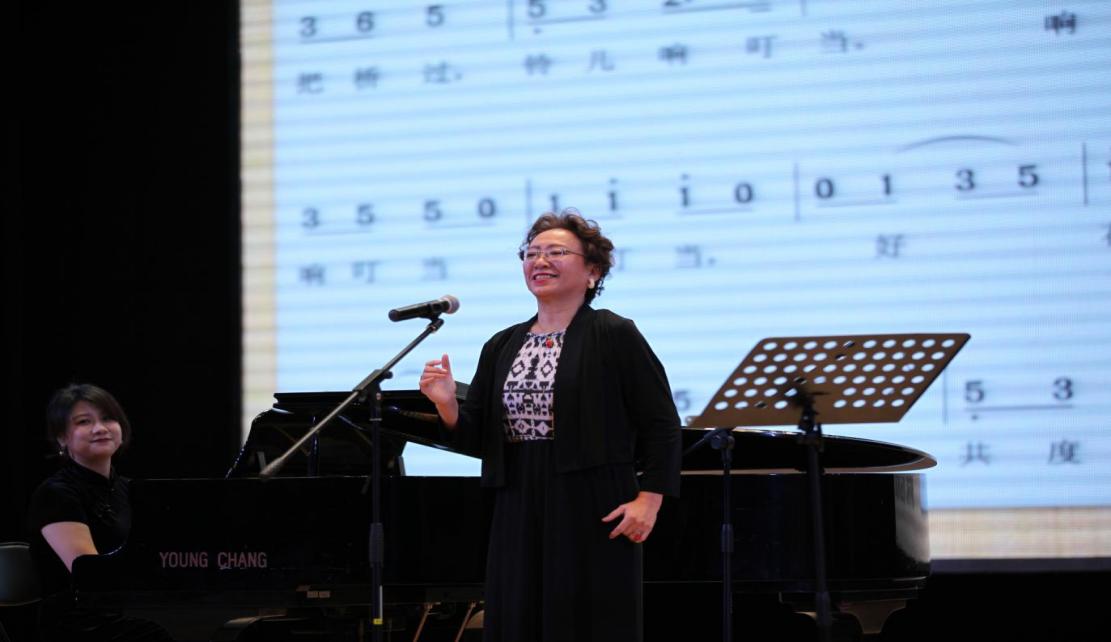钢琴家孙尘心倾情演奏 讲座中,汪莉教授演唱了《我站在铁索桥上》《牵牛花》《大江东去》等个人不同发展阶段的艺术歌曲代表作,充分展现了艺术歌曲的卓越表现力、强大感染力和独特艺术性。艺术源于实践,她带领师生齐唱《送别》,让师生们通过实践方式感受学堂歌曲的艺术感染力,真切体会到人文艺术陶冶情操、启迪心灵的强大力量。音乐理论讲授中,梅弘夫教授强调,“艺术乐歌曲的不同旋律能将歌词具像化,使听众能够更加深入地理解和体验歌曲所传达的内涵,沉浸在音乐与歌词共同构建的美妙世界中”。他用生动的音乐实例介绍了艺术歌曲“诗歌、旋律、钢琴伴奏”的三大特性。同时,钢琴家孙尘心演奏肖邦与李斯特的钢琴曲,分别表现出“安静温柔与狂热有力”的音乐意境,展现出钢琴作为乐器之王的卓越表现力。