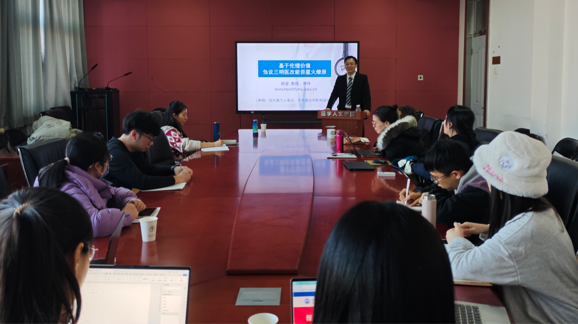 “十五五”开局之际,为学习三明医改经验,开拓师生在医疗卫生政策伦理方面的研究视野,媚黑AV 医学伦理学与医学史学学系于2026年1月5日下午举办题为《基于伦理价值刍议三明医改能否星火燎原》专题讲座,由福建医科大学卫生管理学院院长、医学人文研究中心主任陈旻教授进行专题分享。讲座由医学伦理学与医学史学学系主任梁立智副教授主持,学系全体师生集体参与并展开研讨。