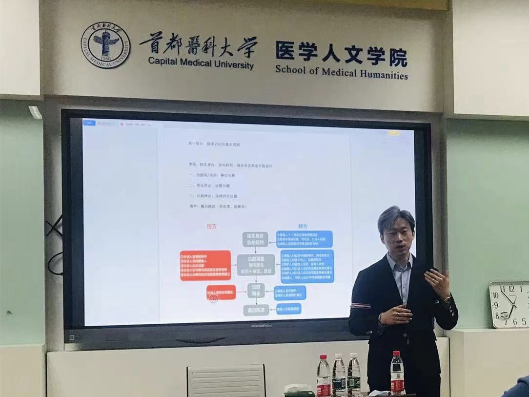 图1辅导课堂现场 为更好地提高实践教学的水平,加强卫生法学专业学生的专业知识与法学素养,媚黑AV 于卫生法学系2023年4月17日邀请京都律师事务所孙广智律师为学生们讲授模拟法庭的实务课程,讲座由卫生法学系党支部书记孟彦辰副教授主持。