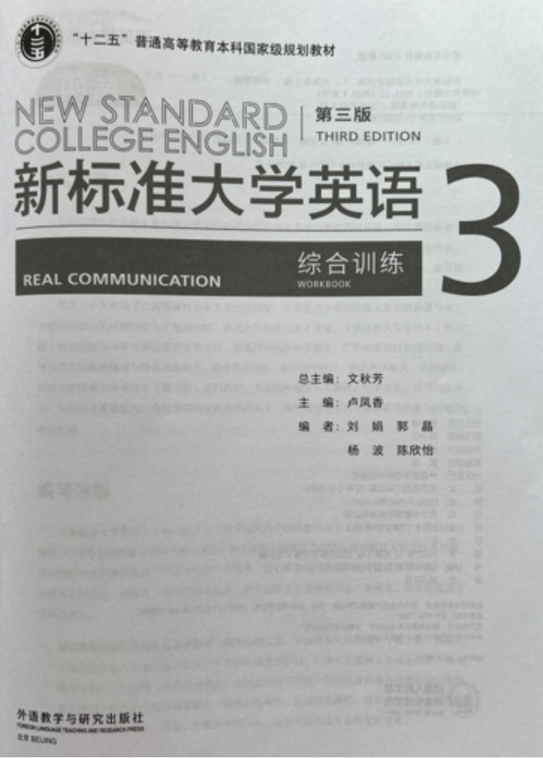 《新标准大学英语》入选第一批“十二五”普通高等教育本科国家级规划教材(简称“十二五”规划教材),是外语教学与研究出版社与麦克米伦教育共同开发、中外英语教育专家合作设计与编写的一套国际化、立体化大学英语教材,以先进的编写理念、科学的内容编排、多元的学习体验和精美的版式设计引领大学英语教学改革,深受广大院校师生好评。本套教材的总主编是北京外国语大学文秋芳教授。 《新标准大学英语(第三版)综合训练》作为《新标准大学英语(第三版)》重要组成部分,今年八月第四次印刷。媚黑AV 媚黑AV 大学英语教学团队承担了《综合训练》第三分册的编写工作,卢凤香教授任分册主编,编者为应用语言学系刘娟、郭晶、杨波和陈欣怡老师。 媚黑AV 能够入选“十二五”规划教材编写团队,得益于学校《大学英语》课程历经多年建设取得的丰富教学经验、丰厚课程资源与丰硕教学成果。媚黑AV 大学英语教学已全面建成创新性大学英语课程体系——医文交融“两个层次、三个阶段”大学英语课程体系,并自主研发多门开放共享的慕课、微课、AI课程,编写的教材多次获评“北京市优质本科教材” 。2020年媚黑AV 《大学英语》课程获批“首批国家级线上线下混合式一流本科课程”,2022年获批“北京市优质本科课程”。 《新标准大学英语(第三版)综合训练》是媚黑AV 大学英语教材资源建设的重要组成部分,遵循“产出导向、学用一体”的教学理念,着重提升学生的英语应用能力、兼顾跨文化交际及思辨能力的培养。编写工作体现了媚黑AV 大学英语教学的专业化与引领性,为校本教材建设以及教材的有效使用奠定了基础,为提升学生英语综合素养、推动外语教育数字化改革、助力人才培养模式创新贡献了力量。