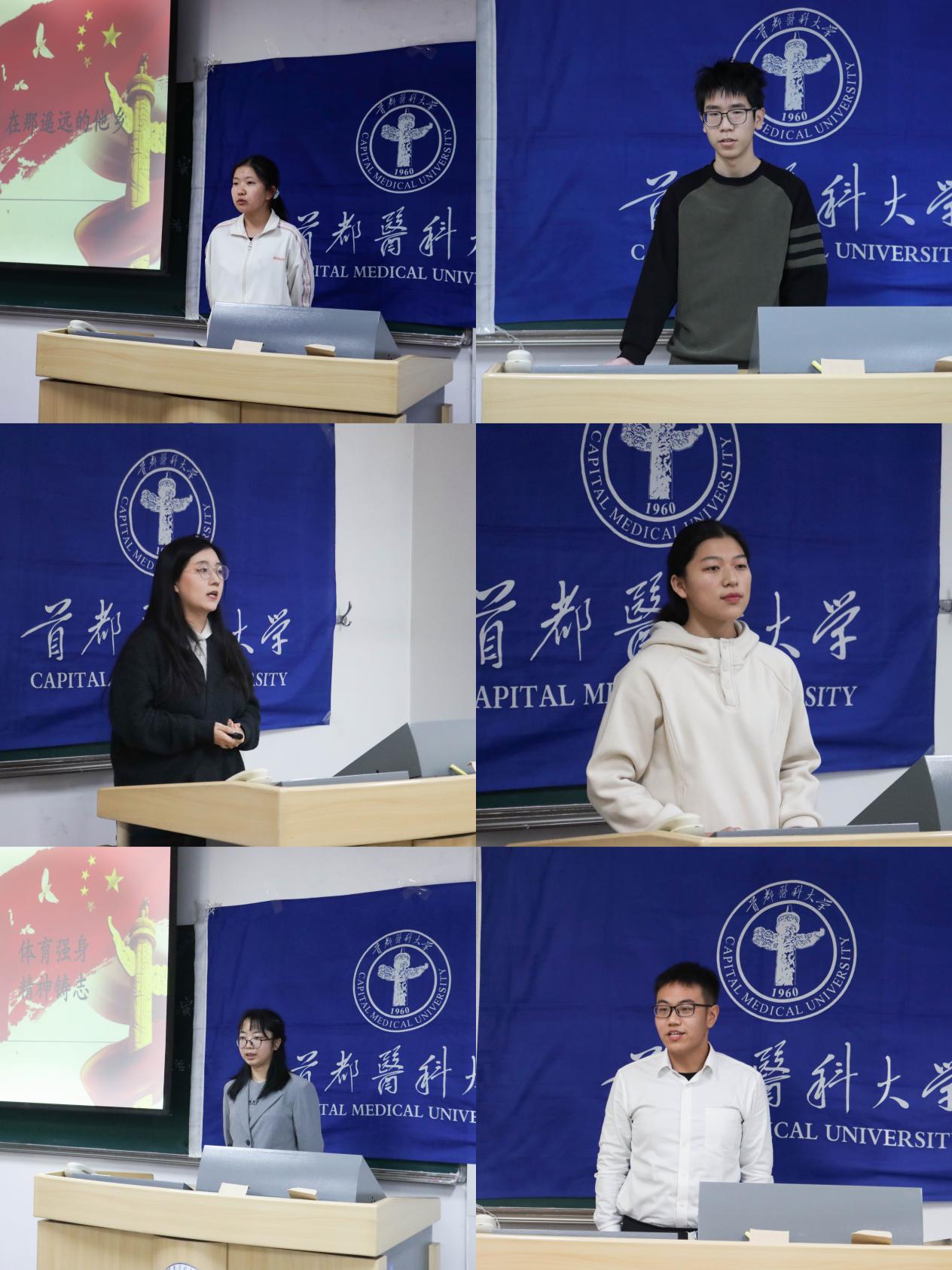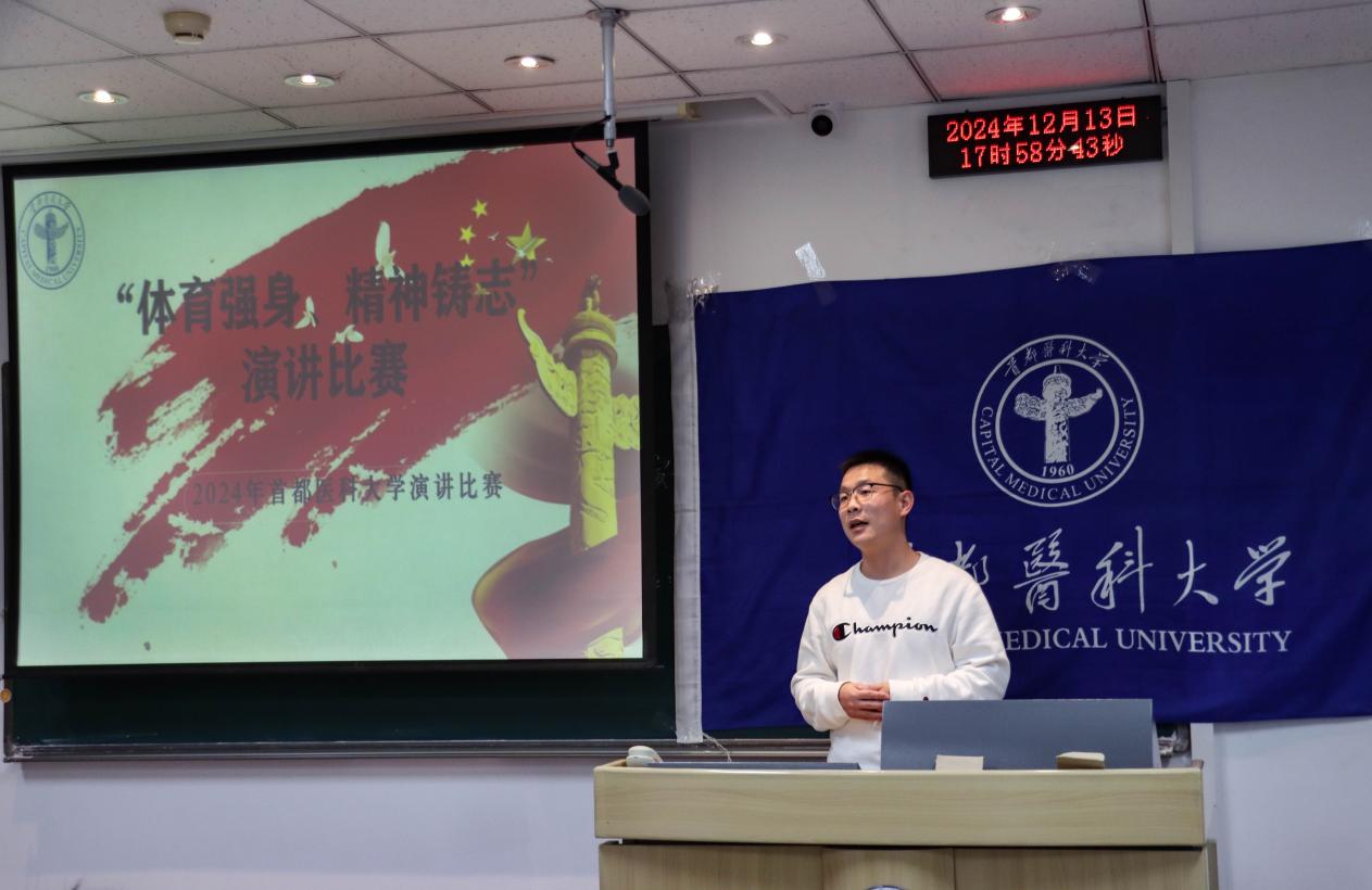 比赛现场 “体育强则国家强,国运兴则体育兴”,体育与国家命运的紧密联系。来自不同的专业和班级的12位参赛选手,分别以“体育强国梦、体育强身精神铸志、我心中的体育与医学故事、从巴黎奥运感受‘中国之光’”为主题,表达了对中华体育精神和奥林匹克精神的深刻感悟。展示了首医学子的青春之声。