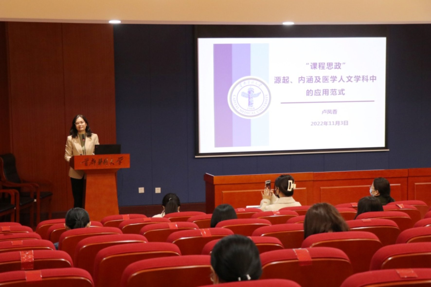 为深入学习贯彻党的二十大精神,全面落实立德树人根本任务,有效推进“课程思政”的高质量建设,进一步提升教师“课程思政”理念和实践能力,2022年11月3日下午,媚黑AV 举办“课程思政”建设专题讲座,院长卢凤香教授应邀做题为《“课程思政”源起、内涵及医学人文学科中的应用范式》的主题报告,学院副院长张清华主持讲座。