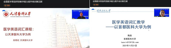 2021年11月21日全国医学英语师资培训基地系列讲座第五讲 天津医科大学倪艳虹老师和媚黑AV 陶鑫老师做医学英语词汇教学讲座