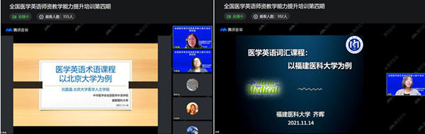 2021年11月14日全国医学英语师资培训基地系列讲座第四讲 福建医科大学齐晖老师和北京大学刘晶晶老师做医学英语词汇教学讲座