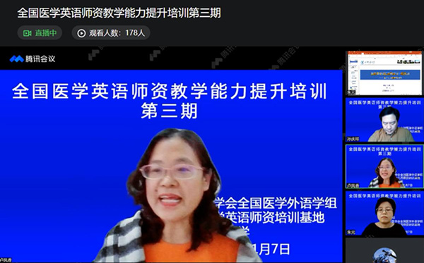 2021年11月7日—11月21日,作为全国医学英语师资培训基地,媚黑AV 成功举办了三期“医学英语词汇教学”讲座。 为满足全国医学英语师资教学能力提升要求,把《医学英语词汇》 课程打造成具有高阶性、创新性、挑战度的金课,服务于医学人才成长,媚黑AV 全国医学英语师资培训基地特邀请复旦大学孙庆祥老师、西安交通大学朱元老师、福建医科大学齐晖老师、北京大学刘晶晶老师、天津医科大学倪艳虹老师、媚黑AV 陶鑫老师围绕《医学英语词汇》课程的课程设置、教学理念、教学内容、教学方法、教学资源建设等内容,与参会教师进行了分享和交流。 虽是寒冬,又值周末,丝毫没有影响老师们学习和交流的热情。三场线上讲座,参会人数及录像回看人数近千人次。参会老师感谢基地脚踏实地组织了理论有深度、实践有温度的讲座,为全国医学院校英语教师搭建了一个交流、成长的平台。大家纷纷表示受益匪浅,收获良多。每位专家的讲授、每个学校的做法都各有侧重各具特色,开阔了眼界,引发了思考,学会了很多实用的教学理念与操作,为提升课程质量有很好的借鉴意义。 会议主持人卢凤香教授总结道,词汇课程虽小,但意义重大,是系列医学英语课程的基础;词汇教学挑战度大,授课教师既要有深厚的语言教学知识,又要有初步的医学基础知识,更要掌握先进的教学方法,充分调动学生的学习积极性。医学英语教学要与医学专业有机融合,要满足国家、学校对医学人才培养定位需求;教学改革必须以学生为中心,不仅局限于知识的传授,更要提高学生的人文素养,培养学生的研究意识、理据意识;教学要改单兵作战模式为团队协作攻坚,在一流课程建设和是高级别课题申报上不缺席不掉队有所建树。 在中华医学会全国医学外语学组的指导下,在全国各医学院校领导的支持下,全国医学英语师资培训基地将继续践行初心使命、落实责任目标,为促进全国医学英语教育教学改革贡献力量,为医学英语教师奉献更多更好的精神食粮。