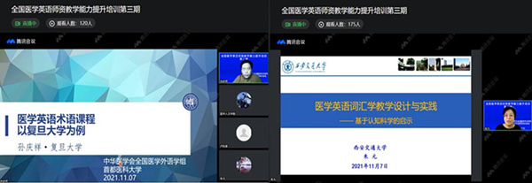 2021年11月7日全国医学英语师资培训基地系列讲座第三讲 复旦大学孙庆祥老师和西安交通大学朱元老师做医学英语词汇教学讲座