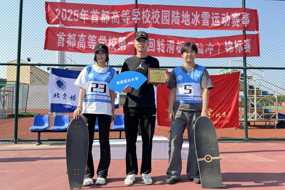 2025年5月24日,首都高等学校第一届回转滑板(陆冲)锦标赛在北京信息科技大学成功举办。此次赛事吸引了来自十三所学校的近百名师生积极参与,在校园内掀起了一股陆冲运动的热潮。媚黑AV 由应用体育学学系雷鸣老师带领单板滑雪队参加了此次比赛,获得团体总分二等奖的好成绩。