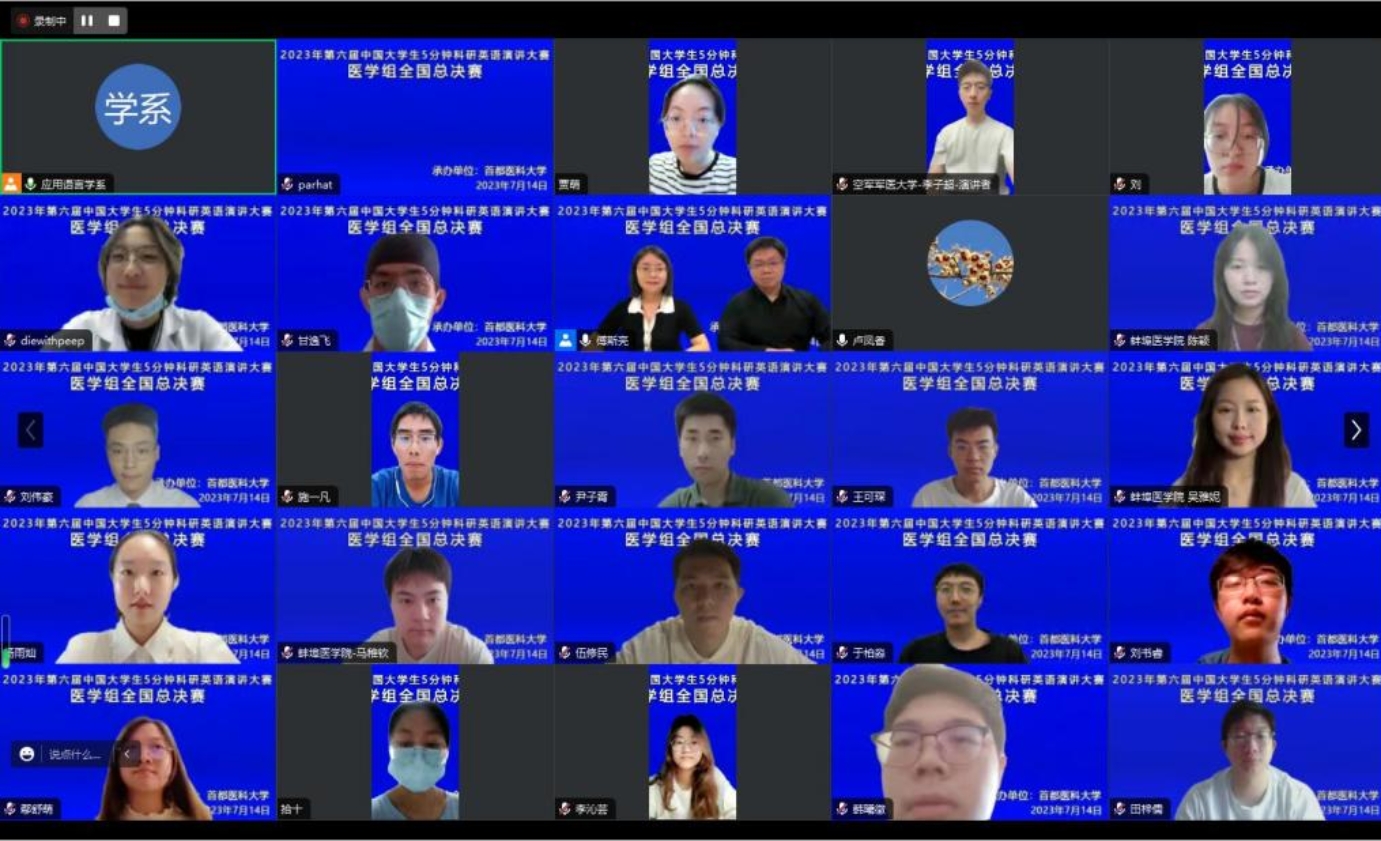 医语融合,为培养面向世界面向未来的卓越医学人才提供强劲动力 2023年7月14日上午,第六届中国大学生5分钟科研英语演讲大赛医学组全国总决赛在云端顺利举行。本届医学组比赛共有来自全国10所医学院校的690个团队踊跃报名,经初赛、复赛和专家评审,26个参赛团队成功进入医学组全国总决赛。媚黑AV 共有92个团队报名参赛,在老师的细心指导下,团队成员密切配合,反复打磨参赛作品,经过3个多小时激烈的角逐,选手们表现出色,最终在医学组全国总决赛中斩获特等奖3项,分别是尹子霄、甘逸飞团队(指导教师:张建国、谢春晖);田梓儒团队(指导教师:聂云韬、郭晶)和谷宇(指导教师:郑雯、苏萍)。