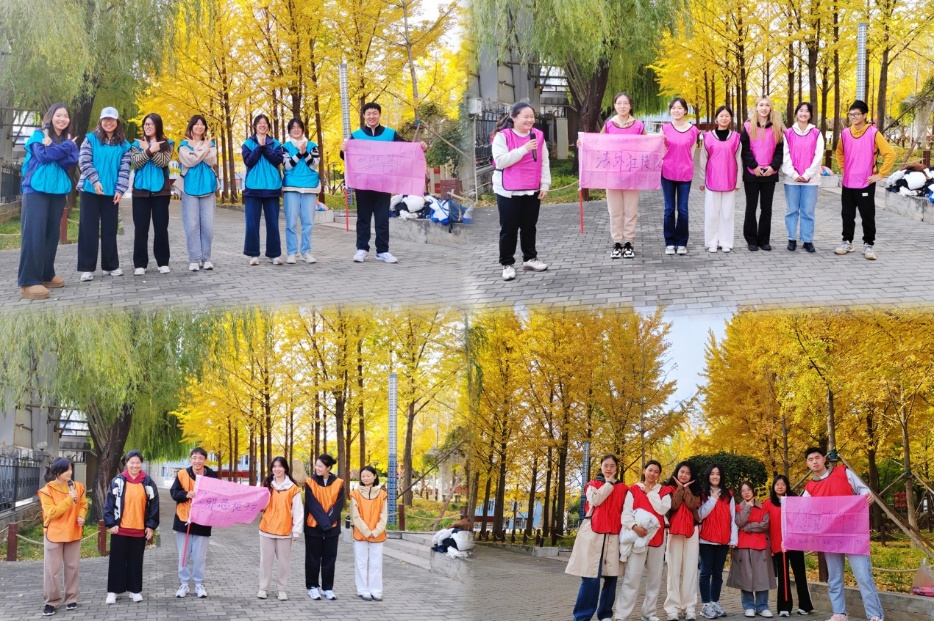 在热身活动后,成员们分为4个小组,每个小组选出了组长、安全员和旗手,并一起绘制了组旗。每组需要在限定时间内借助景区实景地图完成定向越野的一系列任务。这些任务设计巧妙,既有需要策略思考的谜题,也有考验团队协作的户外拓展项目。在解决问题的过程中,每个人都积极参与,充分发挥自己的特长,同时也学会了倾听和信任队友的意见,在大自然中完成团队任务,让同学们在紧张的学业间隙得到了身心的放松。