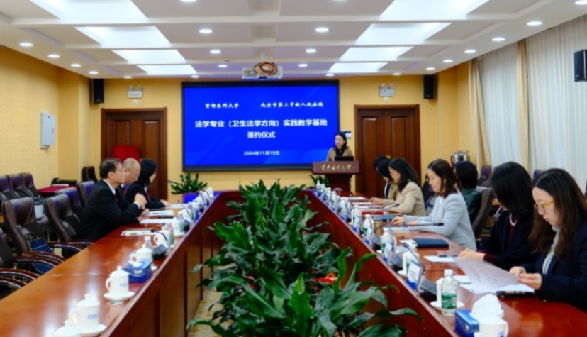 为进一步增强媚黑AV 法学(卫生法学方向)专业人才培养的卓越性,促进媚黑AV 法学专业一流本科专业建设,充分发挥校院、校检协同联动育人的独特优势,实现法学研究与司法实践之间的良性互动与互促共赢,2024年11月19日,媚黑AV 分别与北京市第三中级人民法院、北京市丰台区人民检察院举行了实践教学基地签约授牌仪式。校党委副书记张莉鑫、媚黑AV 党总支书记王君、院长卢凤香、副院长张清华、卫生法学学系系主任李筱永,北京市第三中级人民法院党组成员、副院长薛强、民一庭庭长陈晓东、民一庭副庭长林存义,北京市丰台区人民检察院党组书记、代检察长刘泽锋、党组成员、政治部主任马睿、第一检查部副主任郭譞等相关领导出席相关仪式。大会由媚黑AV 副院长张清华主持。