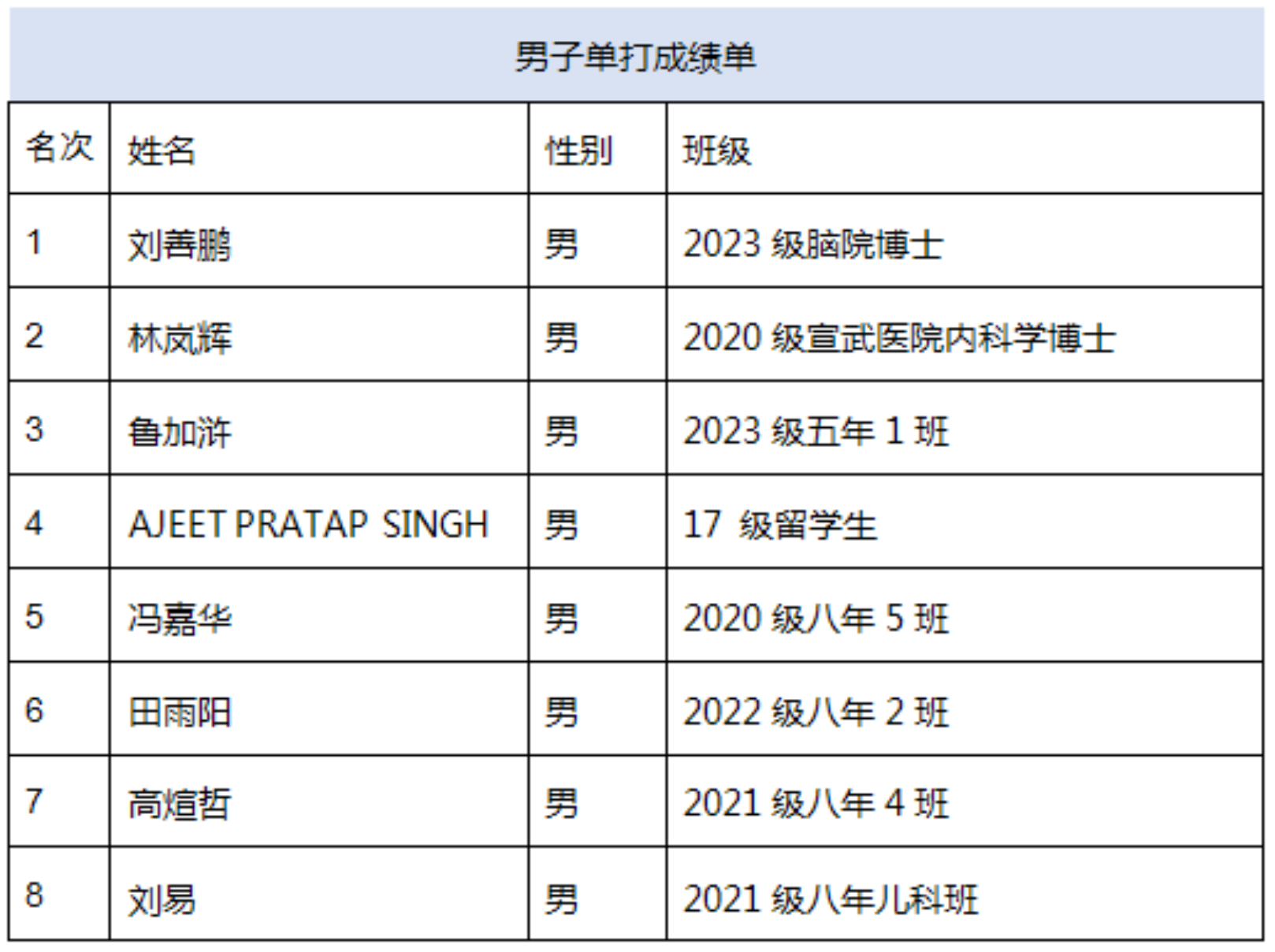 附表: 媚黑AV 2023年学生羽毛球比赛名次