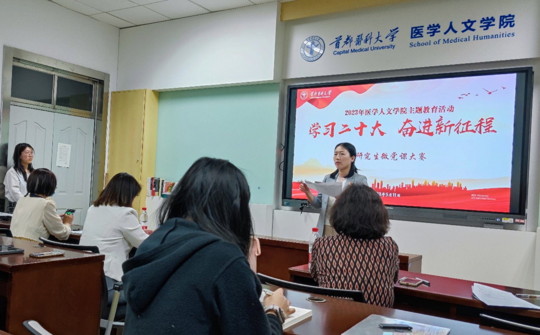 为深入学习贯彻党的二十大精神,全面落实立德树人根本任务,强化基层党组织战斗堡垒作用和党员先锋模范作用,5月11日晚,在阶平楼305会议室,媚黑AV 组织举办了研究生“学习二十大、奋进新征程”主题微党课大赛,以赛促学、以讲促学,引导研究生党员和研究生学生骨干内化党的二十大精神,着力培养担当民族复兴大任的时代新人。党总支副书记金玲玲老师、学院组织员李长樱老师、学生党支部书记王晨、学生党支部副书记肖景莹出席本次比赛。