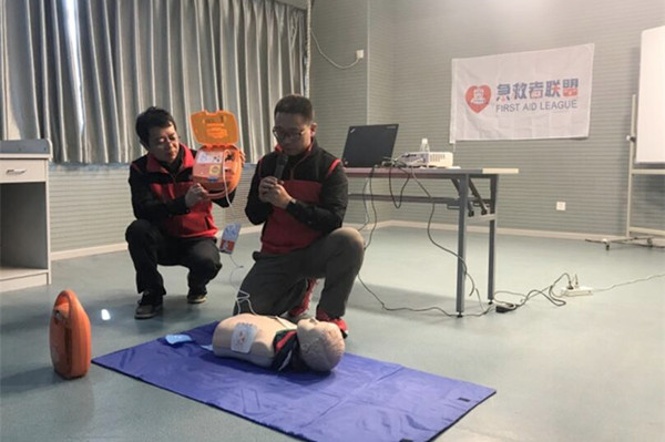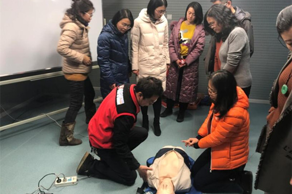 此次讲座以理论和实践操作相结合的方式展开。刘扬医生从基础理论出发,以急救知识普及和技能及AED的使用为重点,为老师们普及了有关急救常识,详细地介绍了AED的历史、普及的必要性,以及正确使用的方法,增强了教职工对于急救知识特别是挽救生命“黄金四分钟”重要性的认识。张元春医生以生活案例为切入点,用通俗易懂、幽默风趣的语言,讲解了应该如何通过轻拍双肩、判断呼吸的方法判断患者是否需要实施心肺复苏术,并详细地讲解了心肺复苏的操作要领、手法及注意事项,并利用人体模型进行现场演示。在随后的实际操作互动环节,老师们争相进行实际操作,在三位专家的悉心指导下,在场每位老师都轻松掌握了心肺复苏术的基本操作手法。